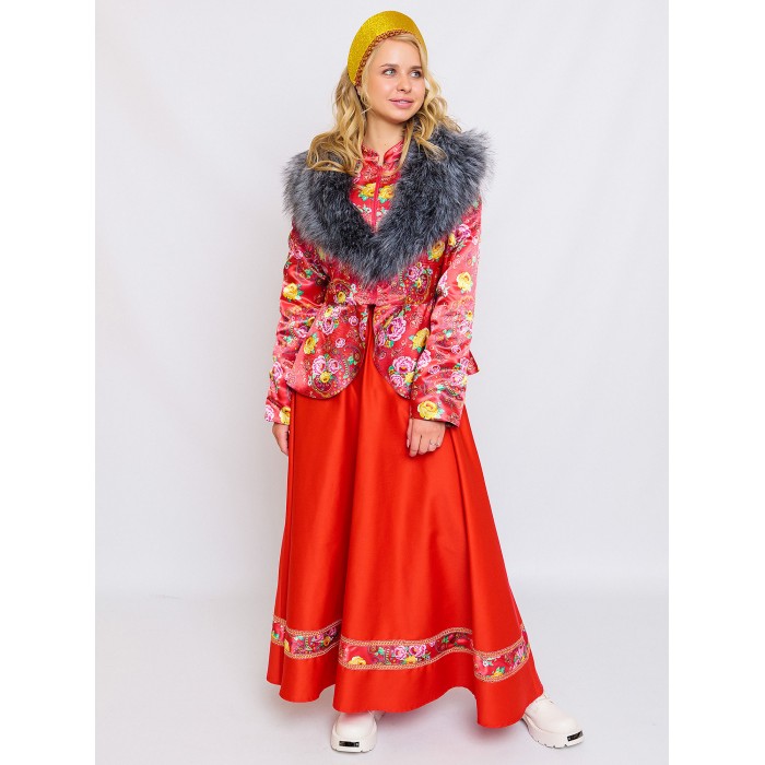 Карнавальный костюм Матрена женский для взрослых. Яркий костюм в русском народном стиле к Масленице и другим праздникам. В комплект входит душегрея на молнии, длинная красная юбка на резинке, платок на голову в тон душегрее, съемный меховой воротник серого цвета. Размеры 44 и 52 на рост 164. Костюм прекрасно подойдет для выступлений, фотосессий и спектаклей.