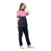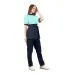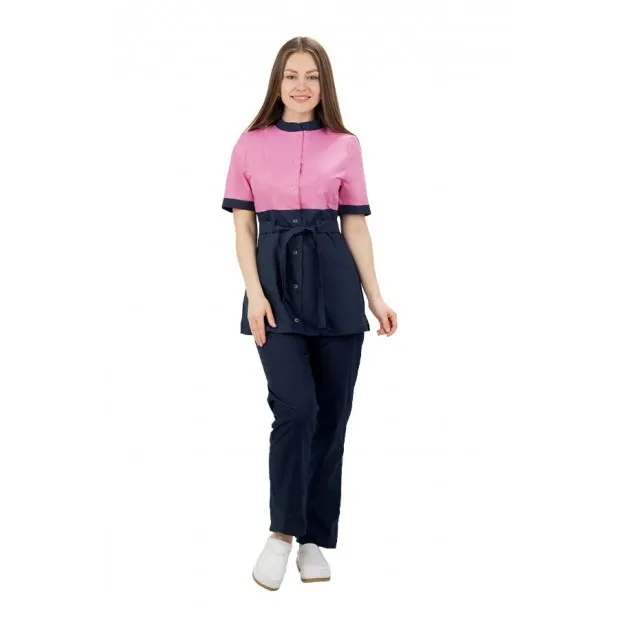 Костюм медицинский "Алиса" состоит из куртки и брюк. Куртка прилегающего силуэта, скомбинированная из тканей контрастных оттенков. На полочке центральная бортовая застежка на кнопки и два боковых кармана. Воротник-стойка, рукав втачной, короткий. Прилегание куртки дополнительно регулируется поясом. Брюки прямые на резинке. Костюм предназначен для медицинских работников.