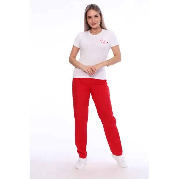 Костюм медицинский женский "Ритм new" из креативной коллекции "Medical Style" состоит из футболки и брюк. Футболка выполнена из трикотажного полотна с содержанием лайкры, что делает ее очень комфортной. Футболка имеет стандартный силуэт с круглым вырезом горловины и укороченным рукавом и декорирована принтом с медицинской тематикой. Брюки прямые на резинке из ткани тиси, выполнены с двумя боковыми потайными карманами, что делает их удобными при использовании аксессуаров. Костюм женский "Ритм new" быстро станет любимым дополнением к Вашему профессиональному гардеробу, но при этом являясь универсальным предметом одежды, может использоваться и для повседневной носки.