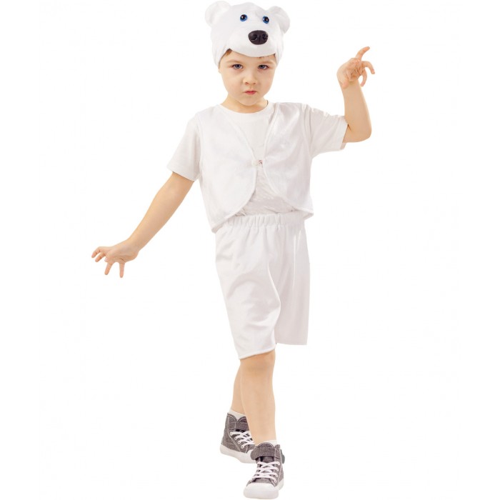 Современным детям, конечно же, знаком этот персонаж. А песня «Ложкой снег мешая» поется на каждый Новый год в детских садах. Карнавальный костюм Медведь Умка белый непременно станет удачным приобретением для родителей мальчиков 4-6 лет. В нем можно отправиться на новогодний утренник, елку или принять участие в костюмированной постановке. Комплектация образа Умки включает в себя шортики, жилетку и шапку.