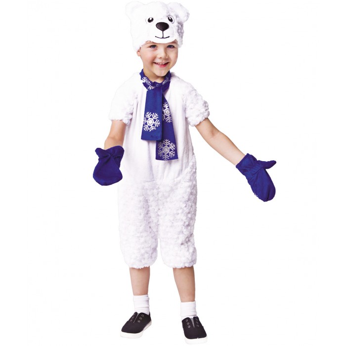 Костюм Медведь Полярный – такой пушистый и белый образ, который подойдет как для мальчиков, так и для девочек. Этот костюм можно надеть на утренник или елку, а также для спектакля или костюмированного выступления. Наряд, хоть и простой, но выделит малыша и подчеркнет его мягкий и добрый характер. В комплект образа входит комбинезон, шапка, шарф и варежки. Подойдет для детей 3-5 лет.