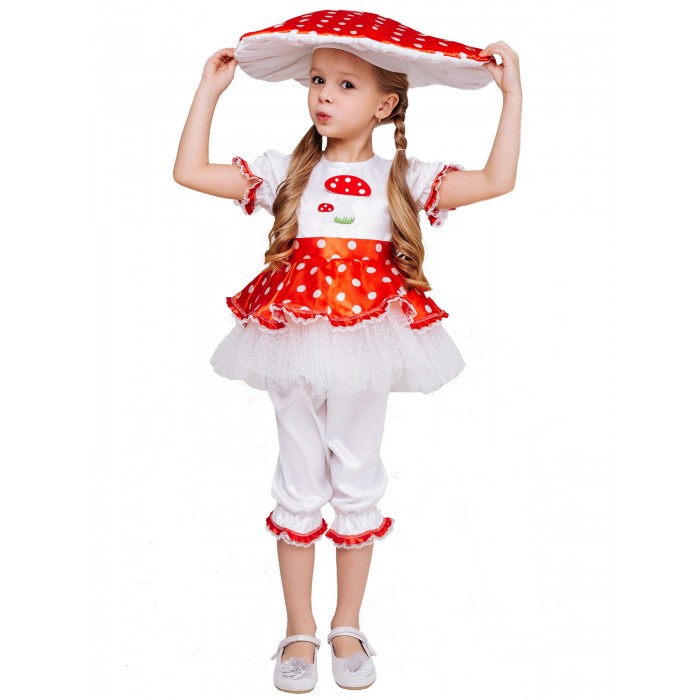 Карнавальный костюм Мухомор создаст отличное настроение на любом празднике. Ребенок будет чувствовать себя в центре внимания в ярком и оригинальном наряде. А еще это отличный костюм для тематического выступления. Он качественно пошит и хорошо смотрится как издалека, так и вблизи. Модель предназначена для девочек. Комплектацию костюма составляет платье, штанишки и головной убор.
