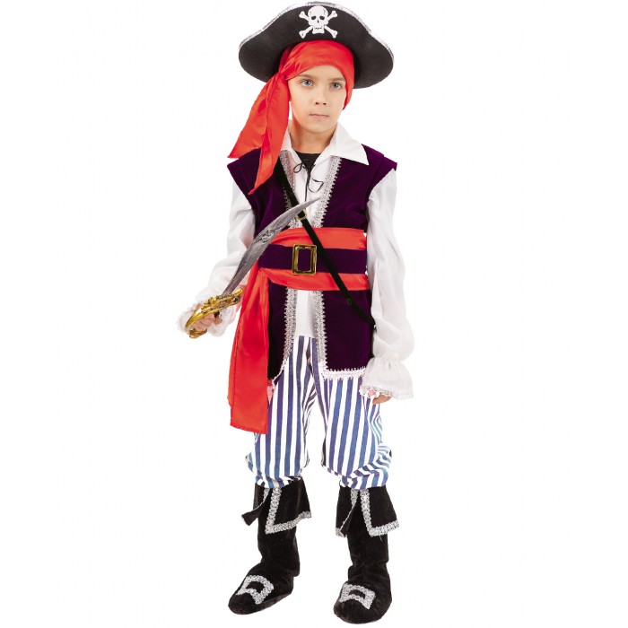 Все мальчишки обожают пиратов – этих морских романтиков, грабящих богатые суда и ищущие сундуки с золотом на неведомых островах. При них написано много книг, еще больше снято мультфильмов и фильмов. Примерить на себя дерзкий образ можно вместе с мастерской Пуговка! Карнавальный костюм Пират Спайк представляет собой классический наряд пирата 18 века, самый узнаваемый и красивый. В комплект образа входит рубашка, штаны, шляпа, бандана, сабля.