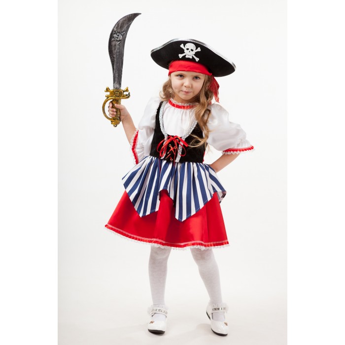 Реалистичность образа и продуманность до мельчайшей детали позволит моментально перевоплотиться в этого интересного персонажа. Остается только включить фантазию и отправляться за сокровищами! В комплект образа Пиратка входит платье, бандана, шляпа, сабля.