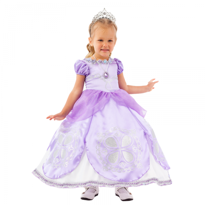 Карнавальный костюм Принцесса для девочки – волшебное воплощение любимого образа очаровательной принцессы из мультсериала. Узнаваемый и яркий образ будет актуален на самые разные праздники: Новый год, костюмированный день рождения, бал-маскарад. Комплект состоит из сиреневого платья, дополненного кулоном и диадемой.