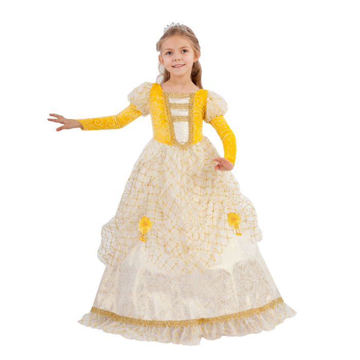 В карнавальном костюме Принцесса Анабель девочка будет чувствовать себя необыкновенно красивой и величественной. Это наряд для новогодней елки или утренника, школьного спектакля или яркого дня Рождения, где «виновница» торжества должна быть в самом красивом платье. Костюм представляет собой желтое бальное платье с подъюбником и диадемой в комплекте.