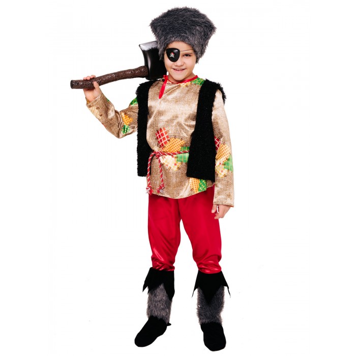 Карнавальный костюм Разбойник подойдет всем мальчикам, которые хотят примерить на себя новое интересное амплуа и удивить всех на празднике. А еще это отличный костюм для спектакля. В таком костюме разрешается пошалить, но только совсем немного! В комплект костюма Разбойник входит: рубаха, жилетка, брюки с сапогами, шапка, повязка на глаз и топор.