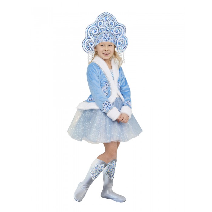 Костюм Снегурочки Полины детский новогодний - яркий и самобытный образ для запоминающихся праздников. В комплект входит платье, шуба, кокошник, сапожки.