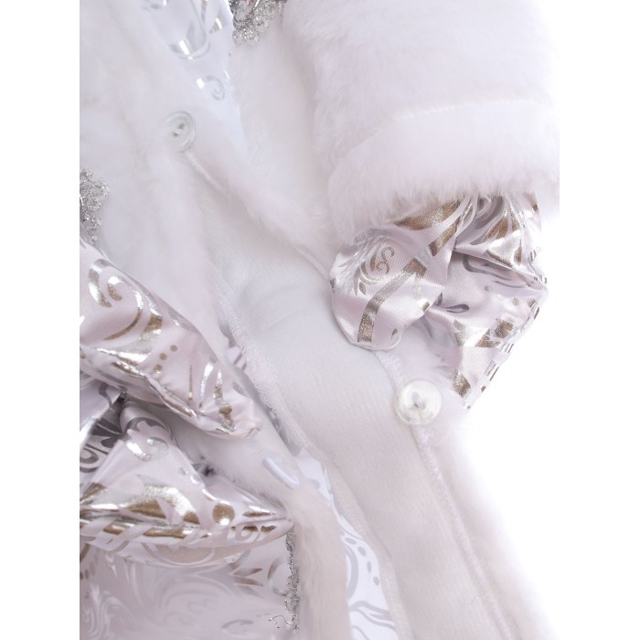 - Оторочка белым искусственным мехом рукавов, воротника и подола