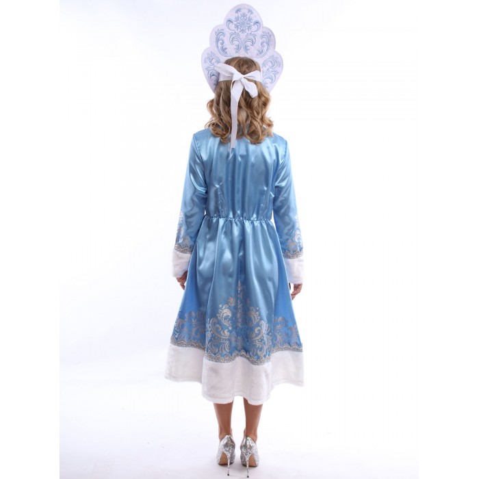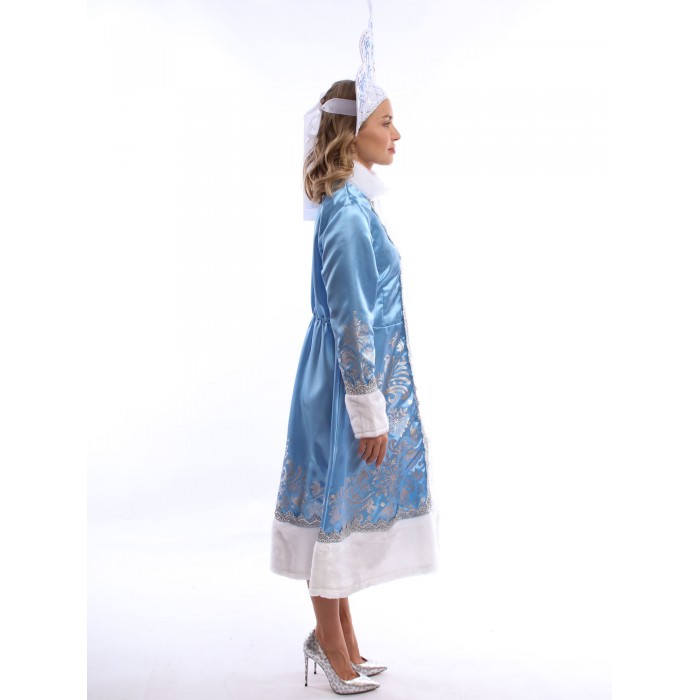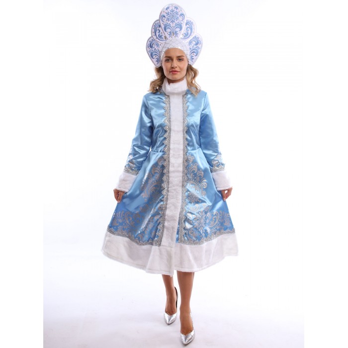 Карнавальный костюм Снегурочка Волшебная для взрослых. В комплект входит голубая шуба с узорами и тесьмой и кокошник. Замечательный наряд для незабываемого праздника для детей и взрослых. Нарядная шубка с кокшником превратят любую девушку в загадочную и обаятельную Снегурочку.