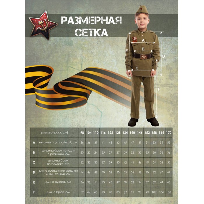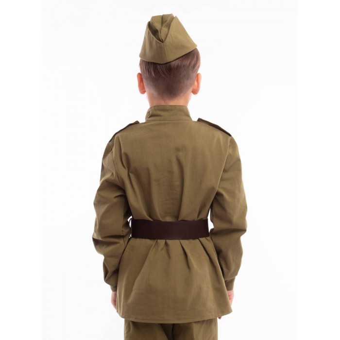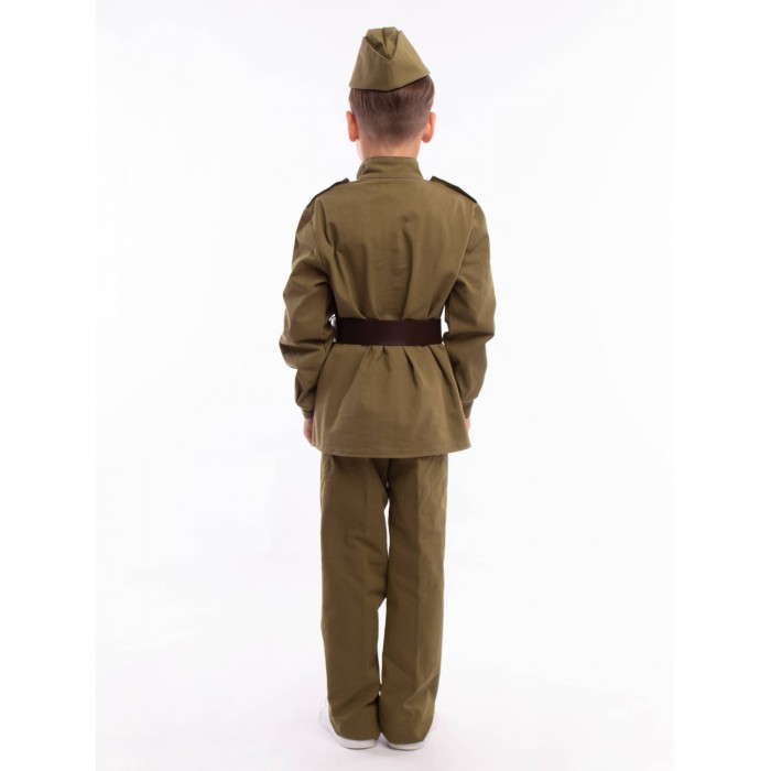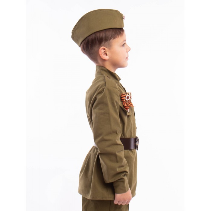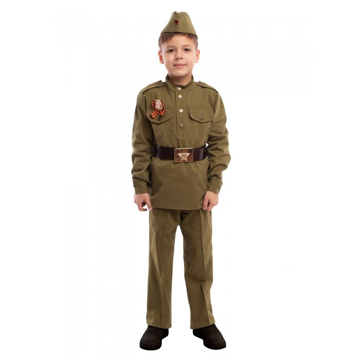 Костюм для мальчика "Солдат" представляет собой копию формы советского солдата. Патриотичный костюм будет актуален к празднику 9 мая. В комплект костюма входит гимнастерка, брюки прямого покроя, пилотка, ремень. Приятным бонусом, дополняющим тематику костюма, станут Георгиевская лента и орден. Комплектация: гимнастерка, брюки, пилотка, ремень, георгиевская лента.