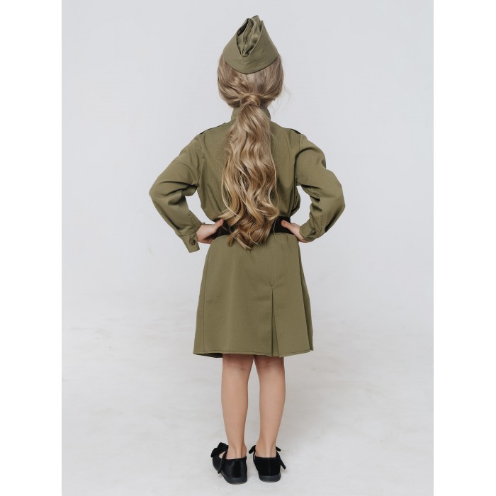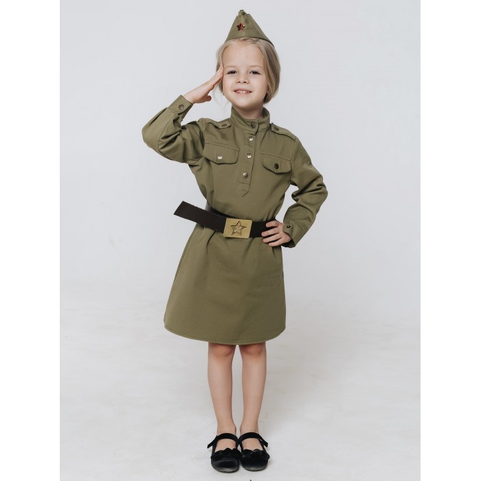 Костюм Солдатки для девочки. Стилизованный под советскую военную форму костюм Солдатки подойдет для празднования 23 февраля и 9 мая. В комплекте гимнастерка, юбка, пилотка, ремень.