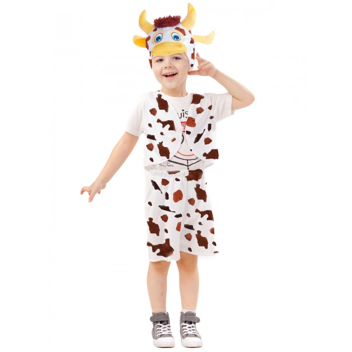 Карнавальный костюм Теленка Гаврюши для мальчика прекрасно подойдет для новогоднего утренника или спектакля в детском саду. Задорный и очаровательный Теленок Гаврюша понравится всем деткам на празднике. В комплект костюма входит жилет, гортики и маска-шапочка.