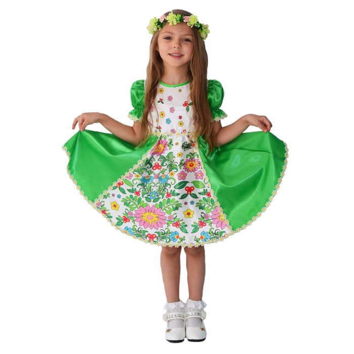 В этом образе мы постарались сплести воедино народные и сказочные мотивы, создать карнавальный костюм, который украсит любой праздник. Весна подойдет для утренников, спектаклей, празднования Масленицы и других мероприятий. Помимо платья, комплект костюма дополняет красивый ободок.