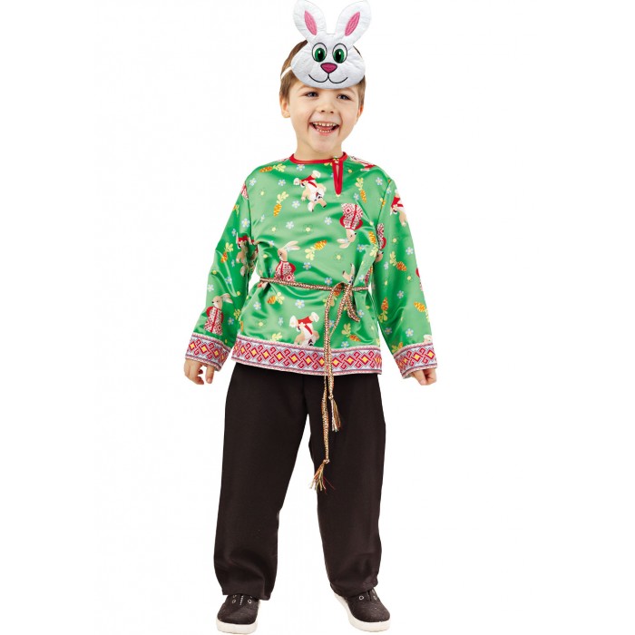 - Принт с зайчиками и оторочка народным орнаментом рукавов и низа рубахи