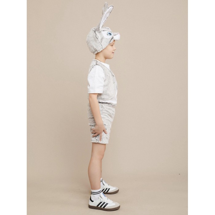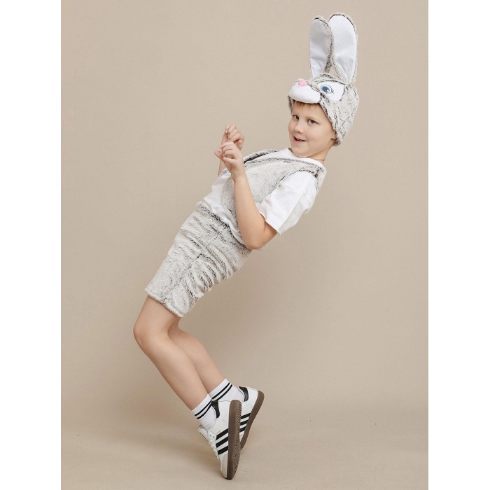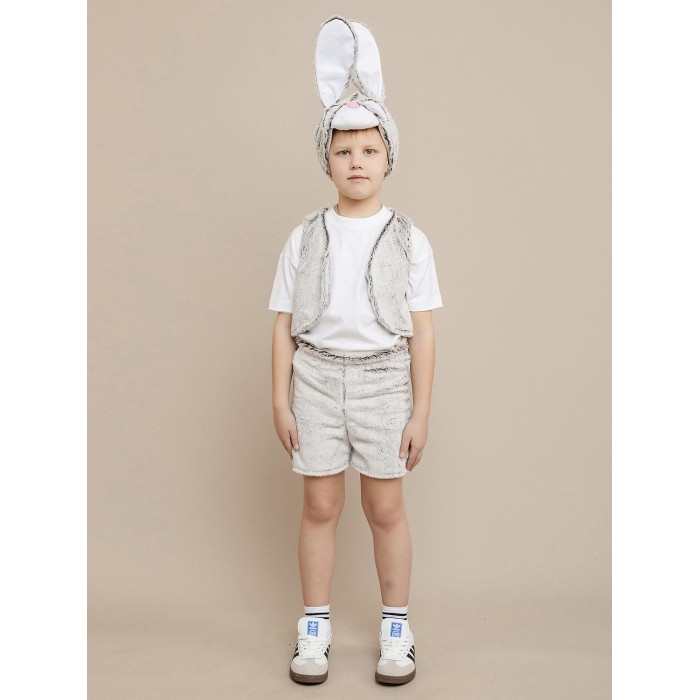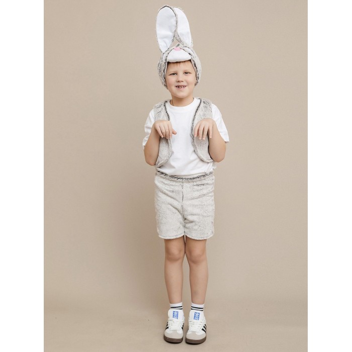 Детский карнавальный костюм "Заяц Пушок" – очаровательный образ для праздника. В набор входит: шапка-маска – мягкая и легкая, с длинными стоячими ушками. Жилетка – комфортная и стильная, с милыми деталями, создающими образ доброго зайчика. Шорты на резинке – удобные и практичные, хорошо сидят и не сковывают движения.