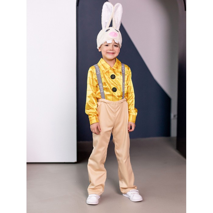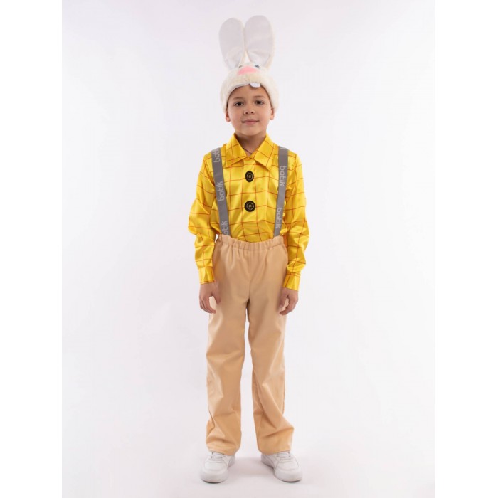 Карнавальный костюм Зайчик Леша для мальчика. В комплекте рубашка, брюки и маска-шапочка.