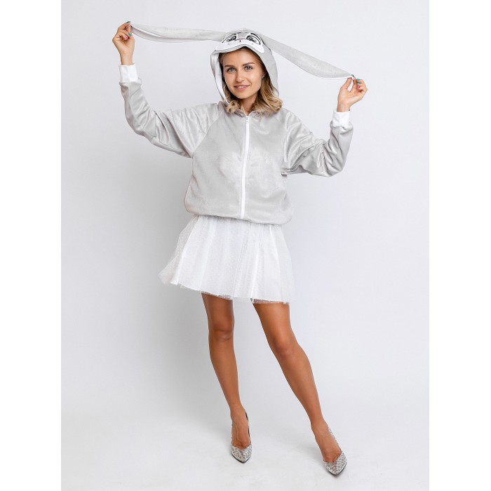 Карнавальный костюм Зайка для взрослых. В комплекте толстовка и юбка. Костюм Зайки взрослый представляет собой очаровательный наряд, который подойдет для семейного праздника или фотосессии.