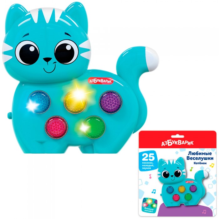 Размер упаковки: 19,2 х 21,1 х 3,6 см Вид упаковки: блистер на картонной подложке Размер изделия: 12,4 х 11,9 х 3,4 см Функционал: интерактивная игрушка для мальчиков и девочек Страна производитель: КНР Материал: пластик Комплектация: музыкальный котенок «Любимые Веселушки» - 1 шт. Батарейки: 3*ААА (в комплекте) Вес: 170 гр. Возраст ребенка: 3+ Очаровательный музыкальный котенок «Любимые Веселушки» обязательно поднимет детям настроение. Ребенок с удовольствием будет нажимать на яркие кнопочки и слушать добрые песенки и веселые мелодии. Изготовлена игрушка из высококачественного, прочного пластика. Особенности: - оригинальный внешний вид; - компактный размер; - работает на батарейках; - любимые песенки; - веселые мелодии; - забавные звуки; - подходит для детей в возрасте от 2-3. В процессе игры ребенок развивает: - слуховое восприятие; - музыкальные способности; - воображение; - речь; - память.