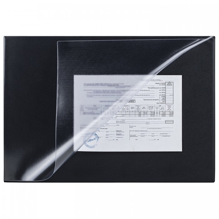 Коврик-подкладка настольный для письма (590х380 мм), с прозрачным карманом, черный, BRAUBERG, 236774