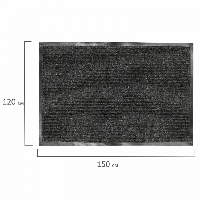 Коврик входной ворсовый влаго-грязезащитный 120х150 см, толщина 7 мм, ребристый, черный, LAIMA, 602877