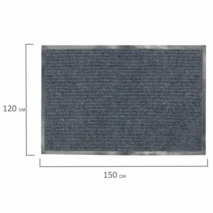 Коврик входной ворсовый влаго-грязезащитный 120х150 см, толщина 7 мм, ребристый, серый, LAIMA, 602875