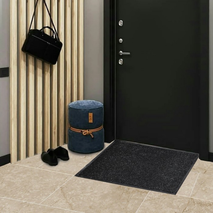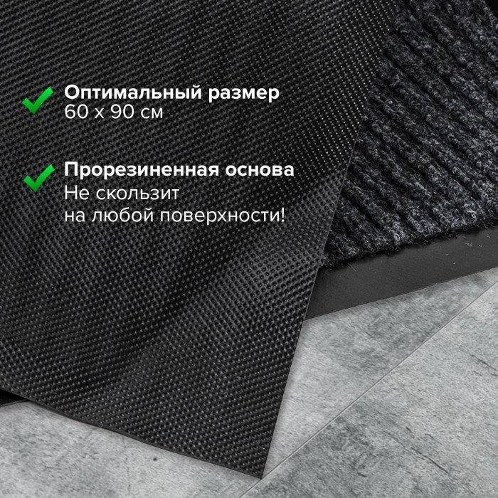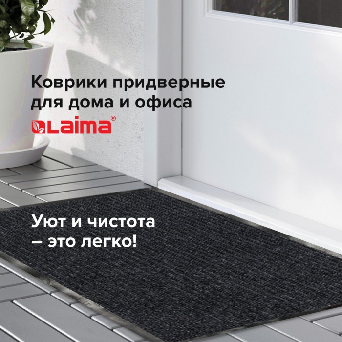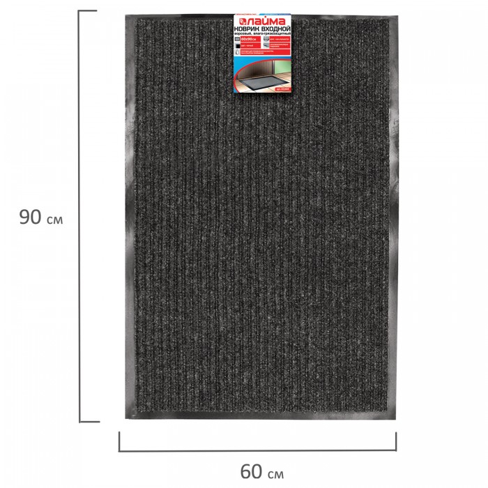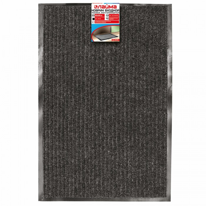 Коврик входной ворсовый влаго-грязезащитный 60х90 см, толщина 7 мм, ребристый, черный, LAIMA, 602869