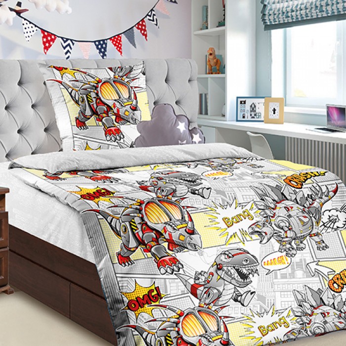 КПБ 'ДайПоспать', 1,5 спальный с 2-мя наволочками 70х70, бязь, 100 % хлопок, пл. 125 гр./кв.м., 'Динозавр' Пододеяльник 146*217, простыня 150*217, наволочка 70*70 (2 шт.)