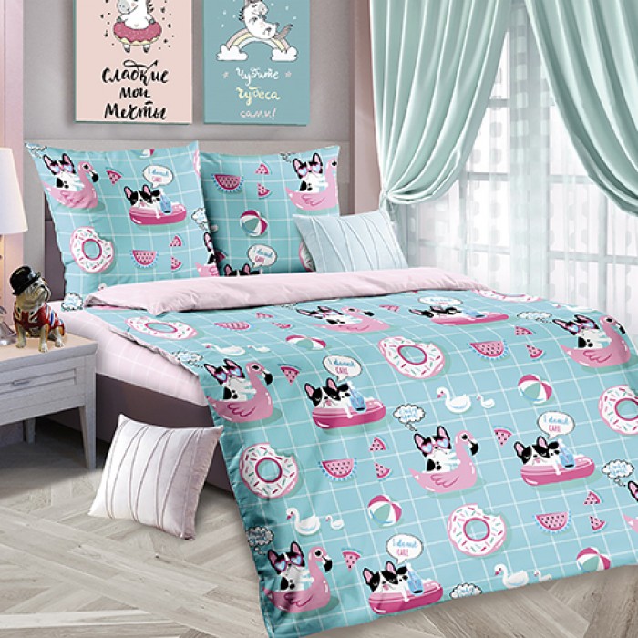 КПБ 'ДайПоспать', 1,5 спальный с 2-мя наволочками 70х70, бязь, 100 % хлопок, пл. 125 гр./кв.м., 'Каникулы' Пододеяльник 146*217, простыня 150*217, наволочка 70*70 (2 шт.)