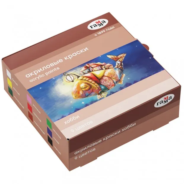 Краски акриловые декоративные Гамма "Хобби", 09 цветов, 20мл, картон. упаковка