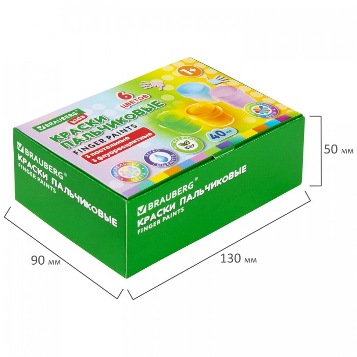 Краски пальчиковые для малышей от 1 года, 6 цветов (3 пастельных + 3 флуоресцентных) по 40 мл, BRAUBERG KIDS, 192400
