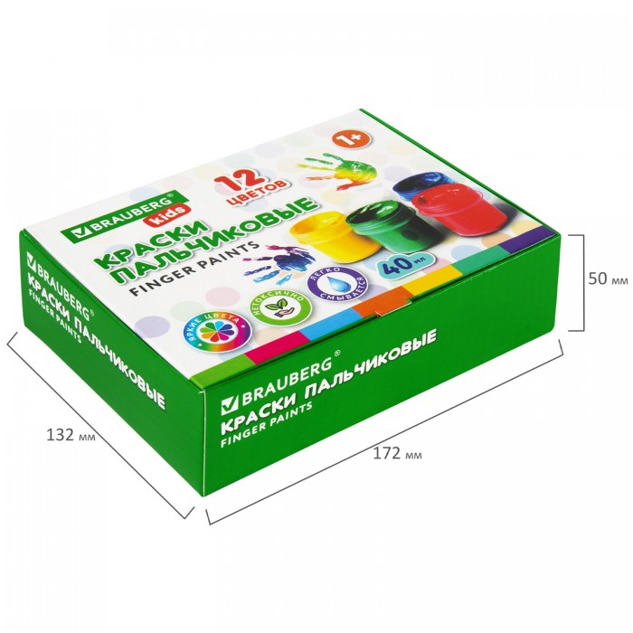 Краски пальчиковые для малышей от 1 года, КЛАССИКА, 12 цветов по 40 мл, BRAUBERG KIDS, 192397