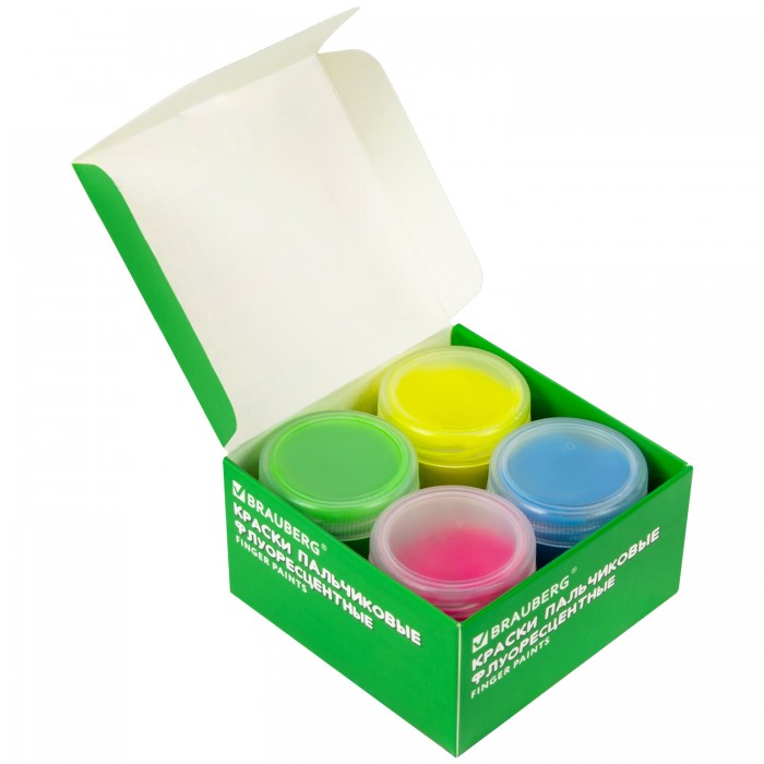 Краски пальчиковые флуоресцентные для малышей от 1 года, 4 цвета по 40 мл, BRAUBERG KIDS, 192399
