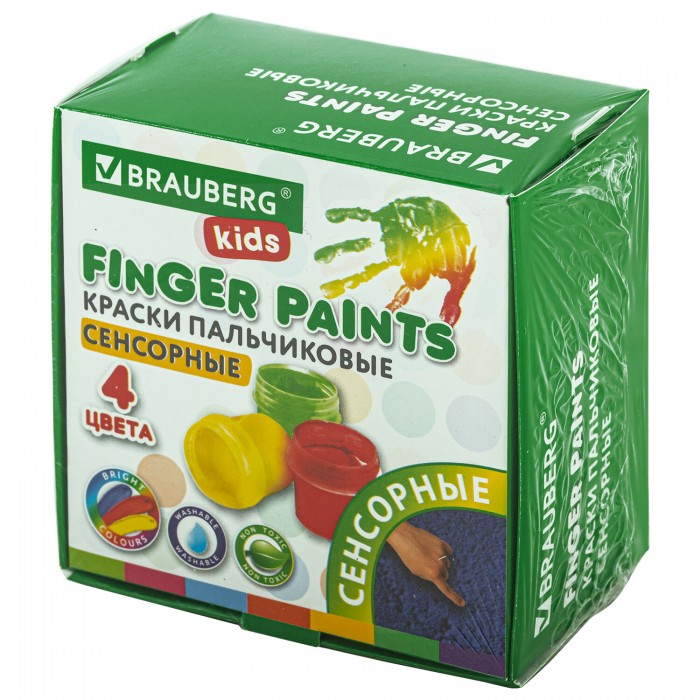 Краски пальчиковые сенсорные для малышей от 1 года, 4 цвета по 40 мл, BRAUBERG KIDS, 192280