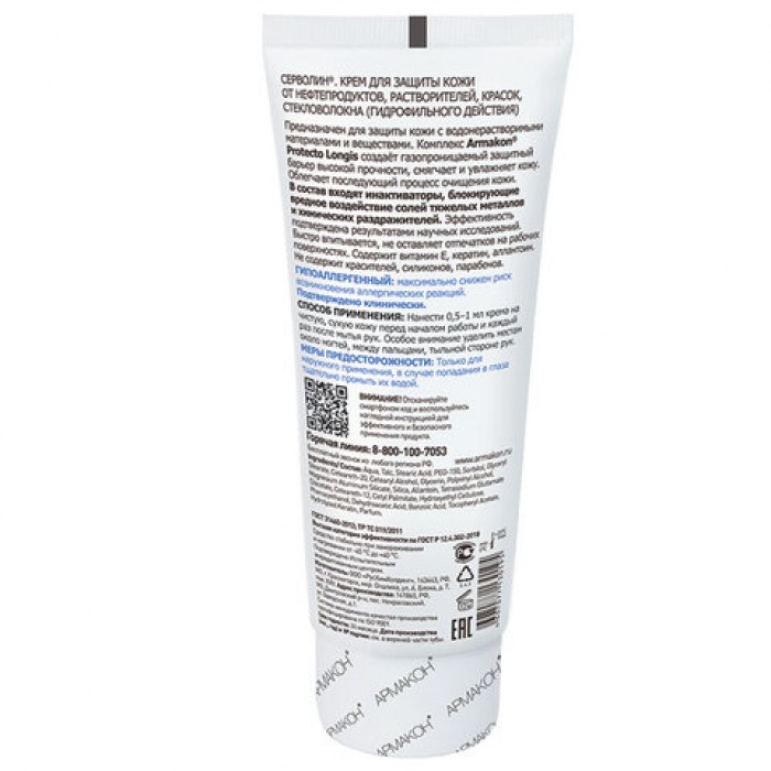 Крем защитный, 100 мл, АРМАКОН "СЕРВОЛИН", гидрофильный, от нефтепродуктов, смазочно-охлаждающих жидкостей, красок, 1197
