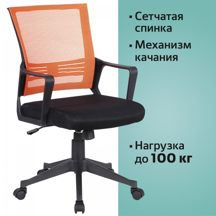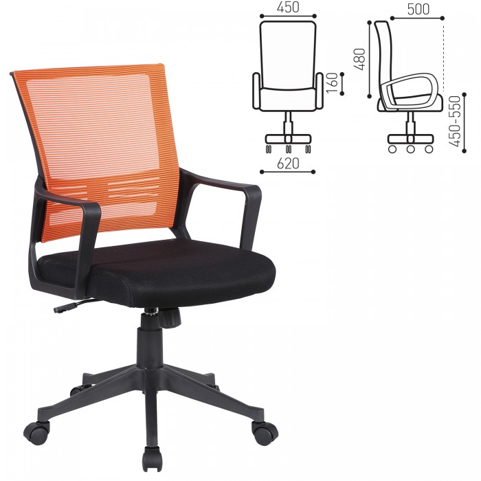 Кресло BRABIX " Balance MG-320", с подлокотниками, комбинированное черное/оранжевое, 531832