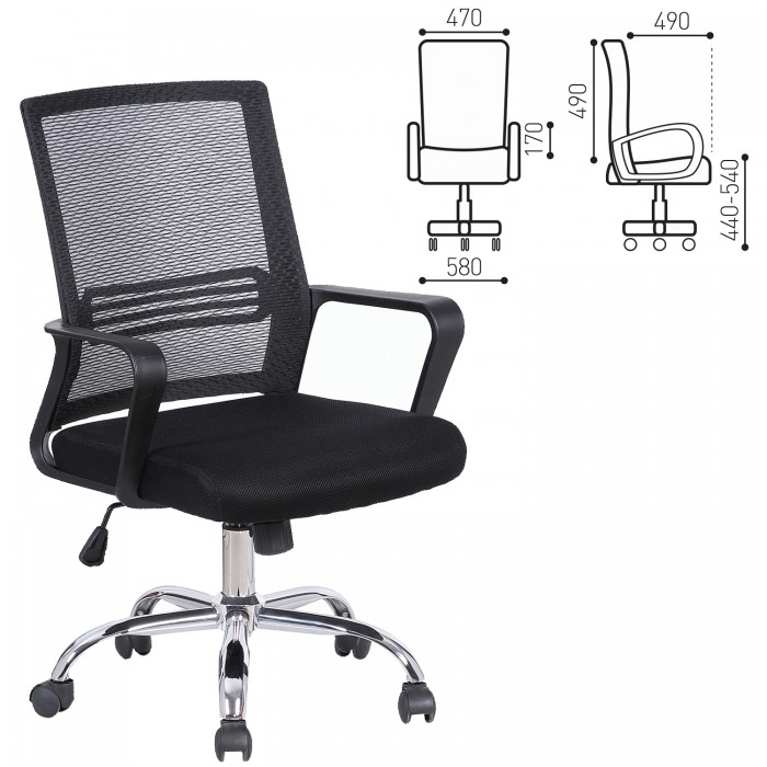 Кресло BRABIX "Daily MG-317", с подлокотниками, хром, черное, 531833