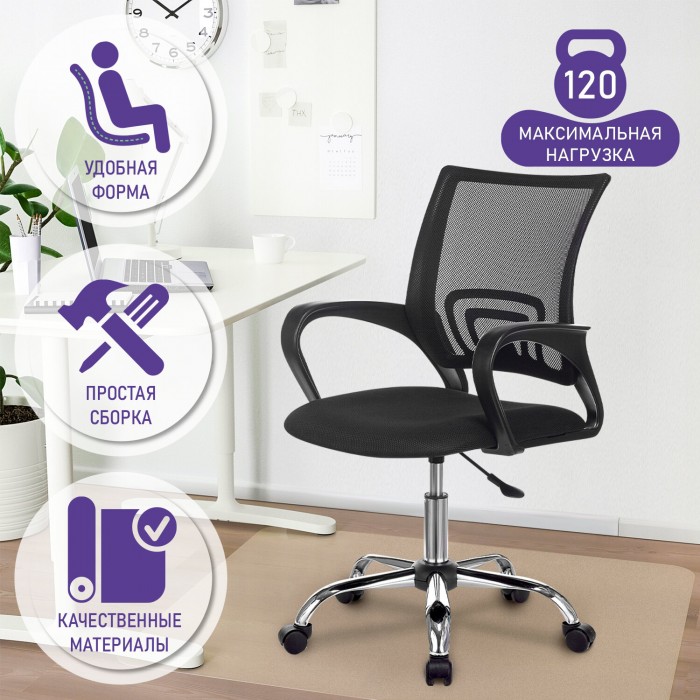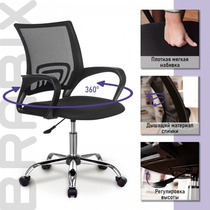 BRABIX "Fly MG-396" – доступное, качественное кресло с эргономичной сетчатой спинкой. Прекрасный вариант для повседневной работы в офисе и дома.