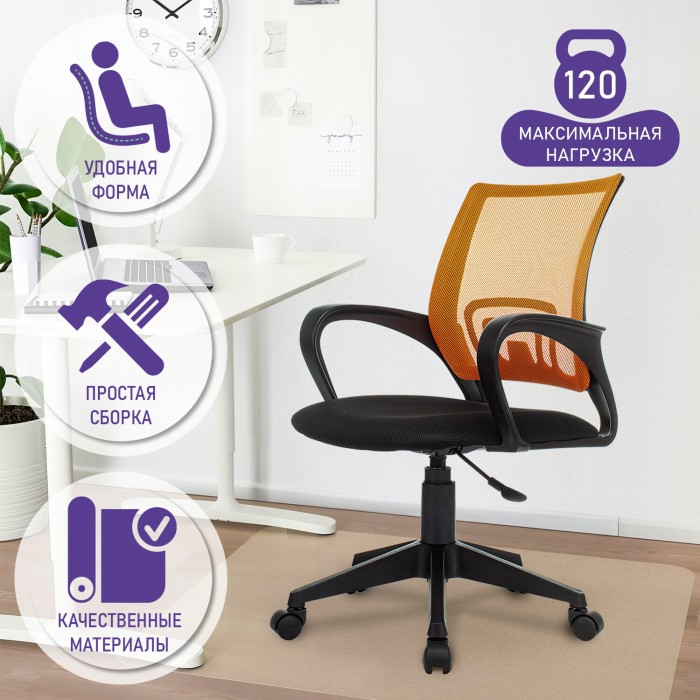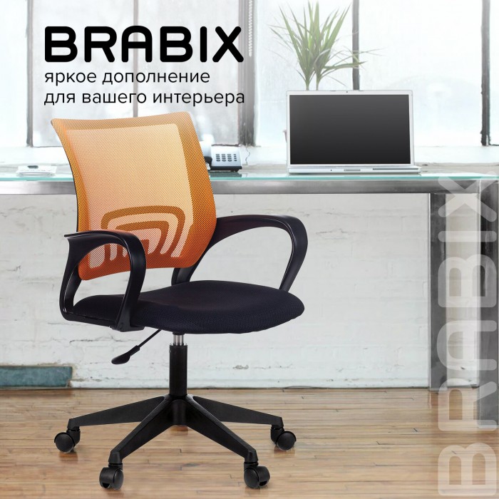 Кресло BRABIX "Fly MG-396", с подлокотниками, сетка, оранжевое/черное, 532084