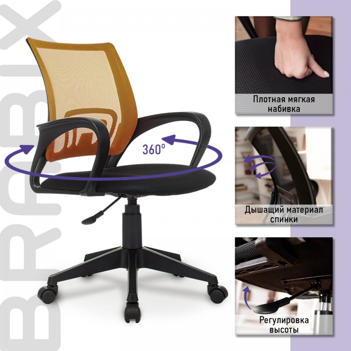 BRABIX "Fly MG-396" - доступное, качественное кресло с эргономичной сетчатой спинкой. Прекрасный вариант для повседневной работы в офисе и дома.