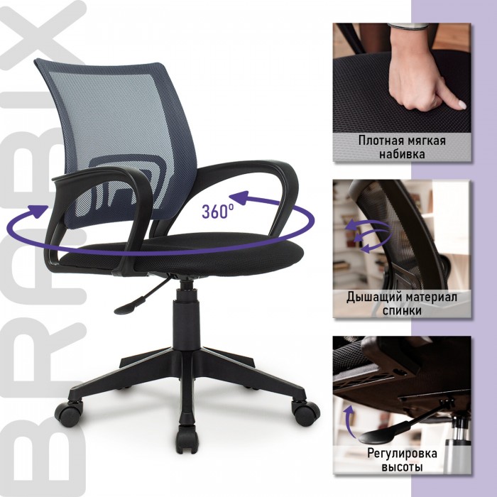 BRABIX "Fly MG-396" - доступное, качественное кресло с эргономичной сетчатой спинкой. Прекрасный вариант для повседневной работы в офисе и дома.