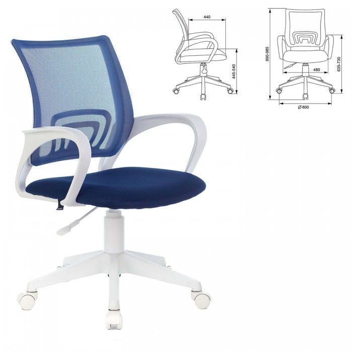 Кресло BRABIX "Fly MG-396W", с подлокотниками, пластик белый, сетка, темно-синее, 532399, MG-396W_532399