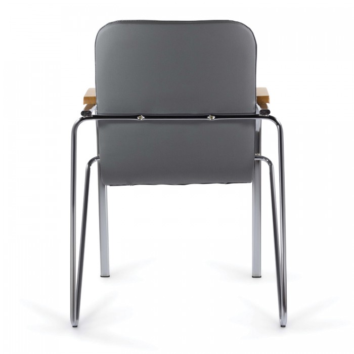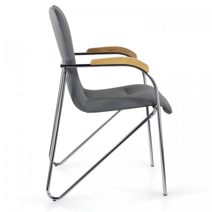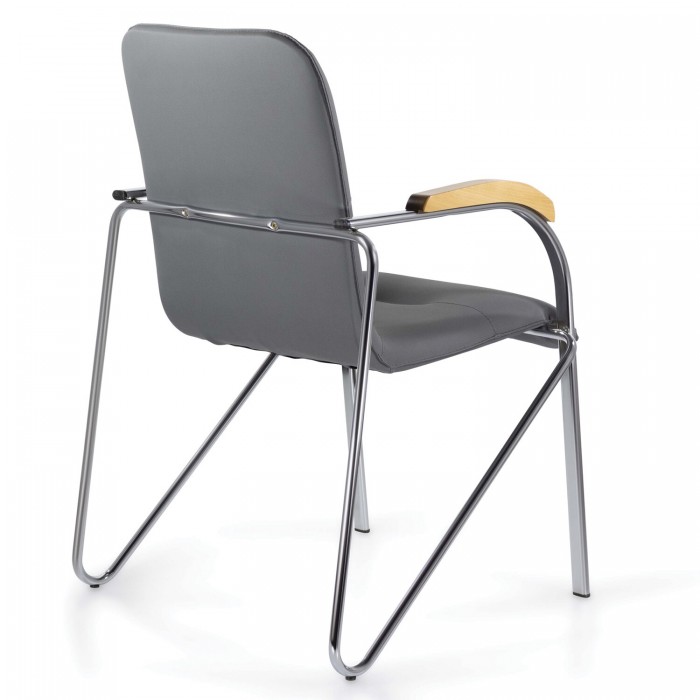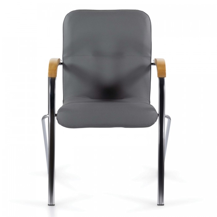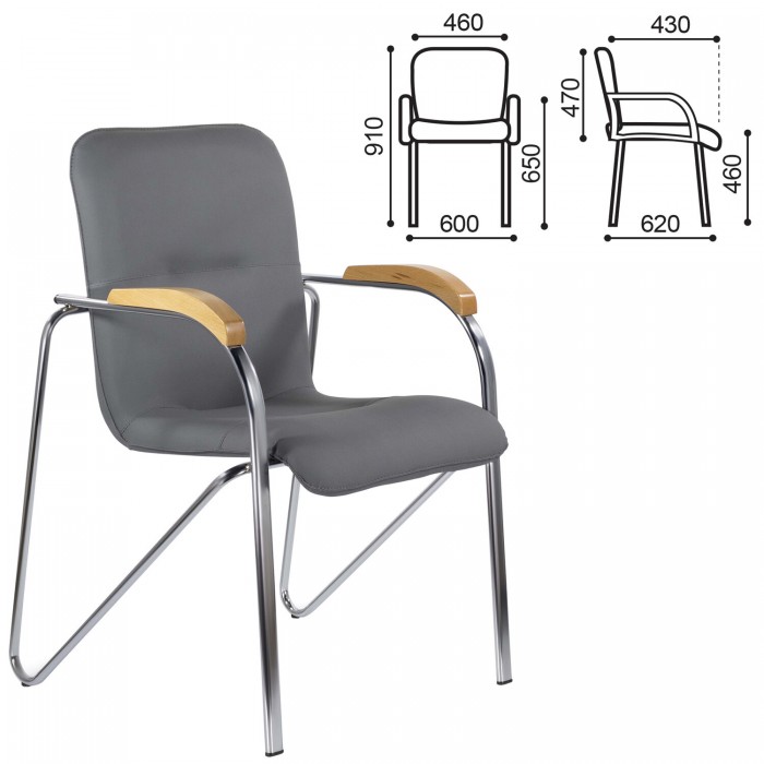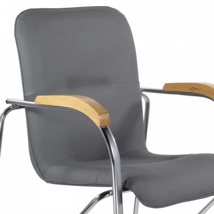 Кресло BRABIX "Samba CF-103", хром каркас, накладки "бук", кожзам серый, собрано, 532758