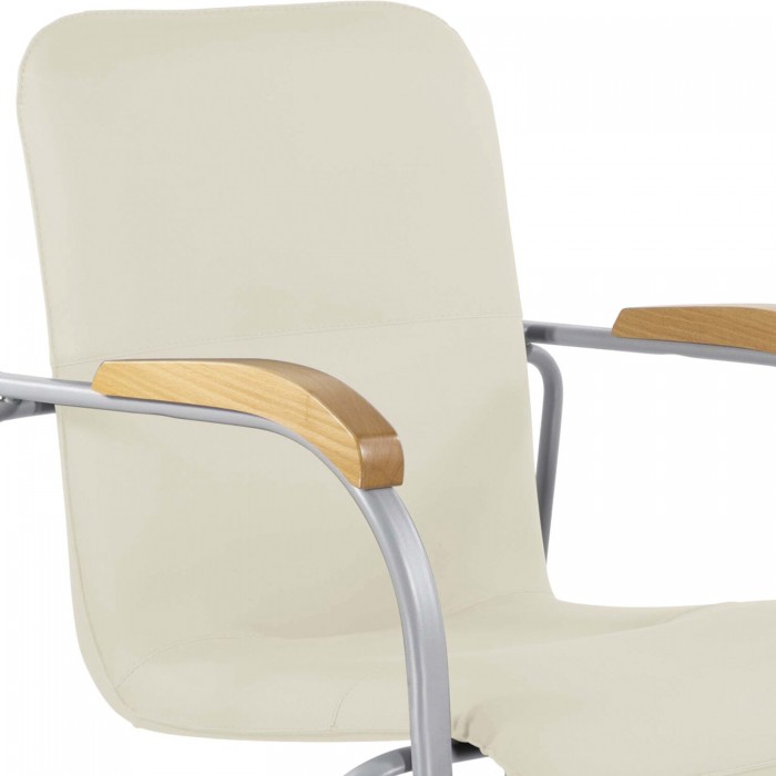 Кресло BRABIX "Samba CF-104", серый каркас, накладки "бук", кожзам бежевый, собрано, 532760
