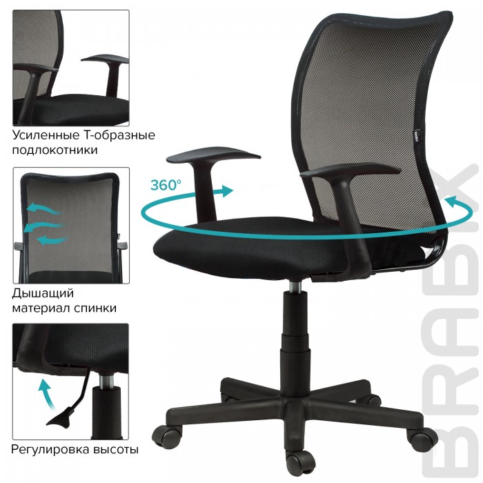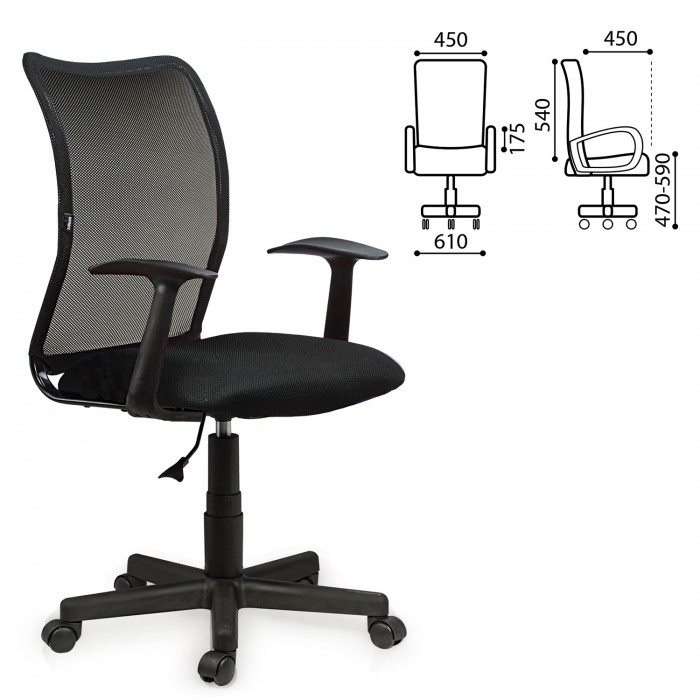 Кресло BRABIX "Spring MG-307", с подлокотниками, черное TW, 531406