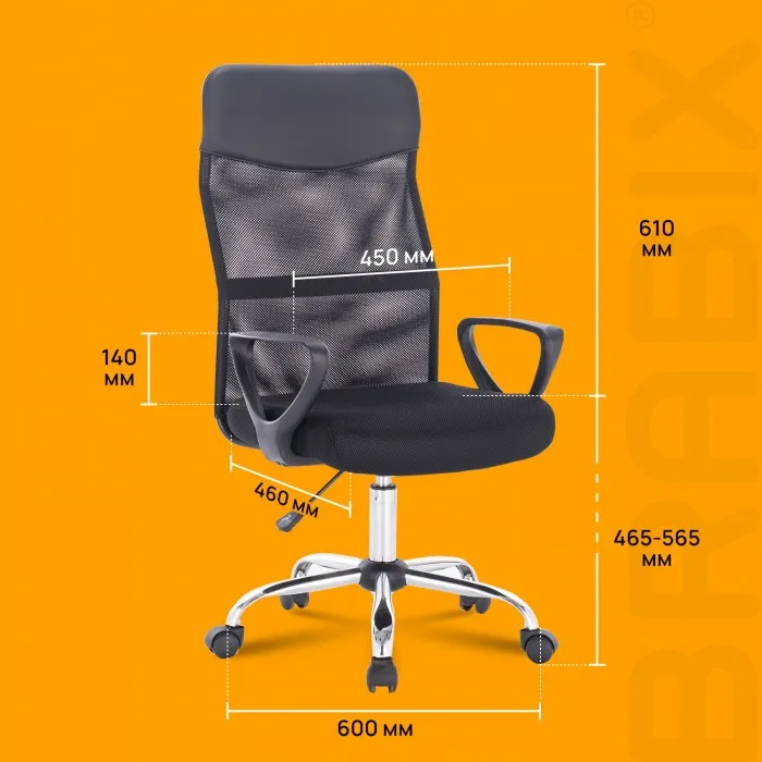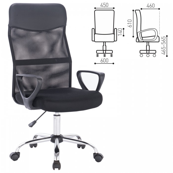 Кресло BRABIX "Tender MG-330", с подлокотниками, хром, черное, 531845