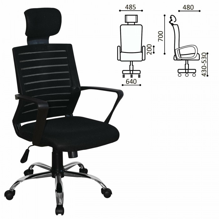 Кресло BRABIX "Victory MG-016", подголовник, хром, черное, 531924