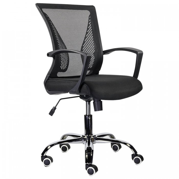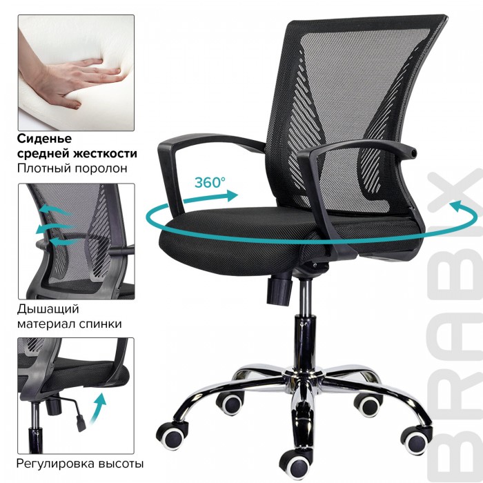 Кресло BRABIX "Wings MG-304", пластик черный, хром, сетка, черное, 532016