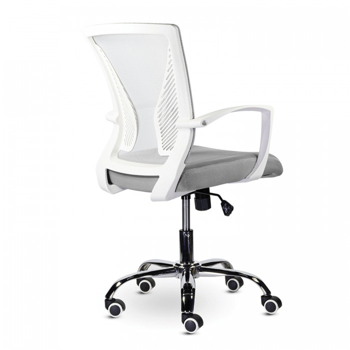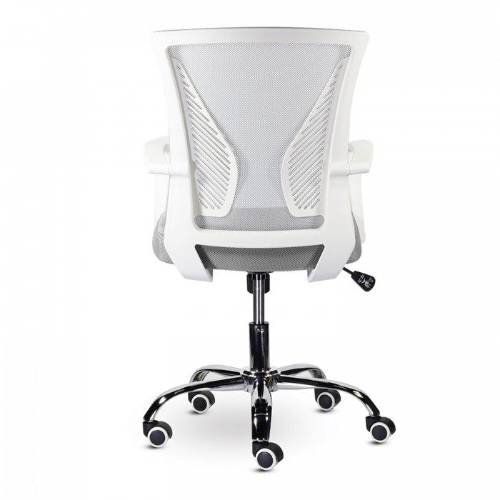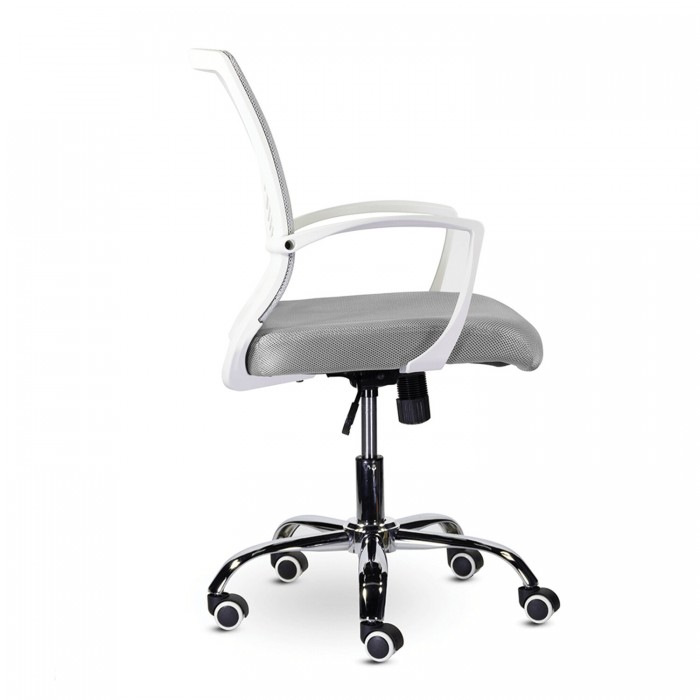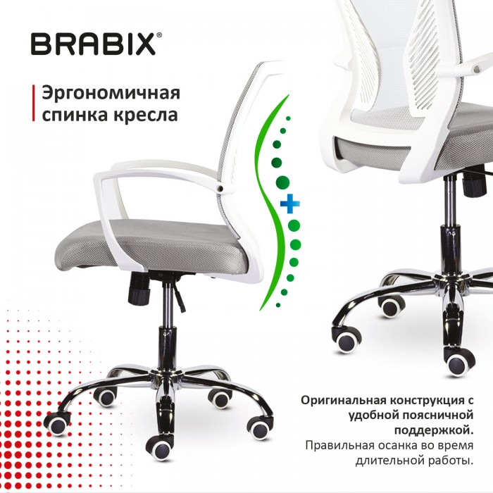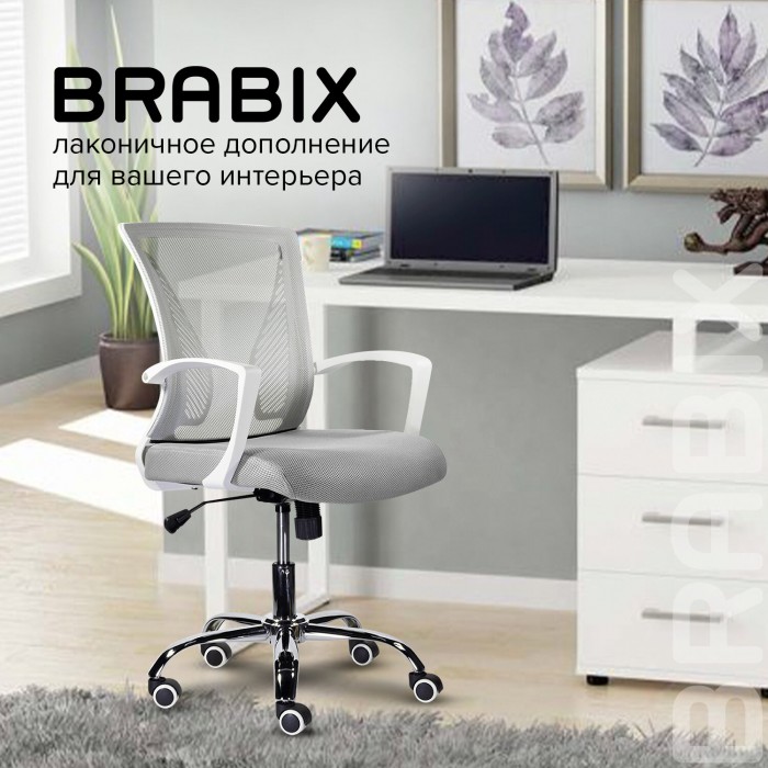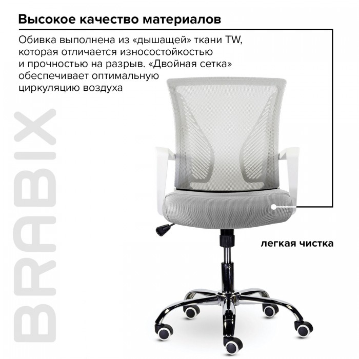 Кресло BRABIX "Wings MG-306", пластик белый, хром, сетка, серое, 532012