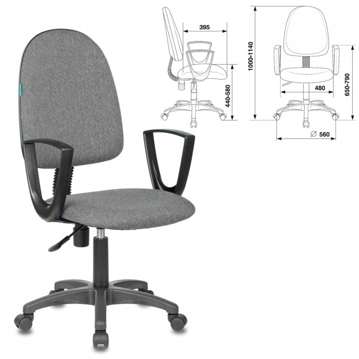 Кресло CH-1300N "Престиж+", с подлокотниками, ткань, серое, 1215476